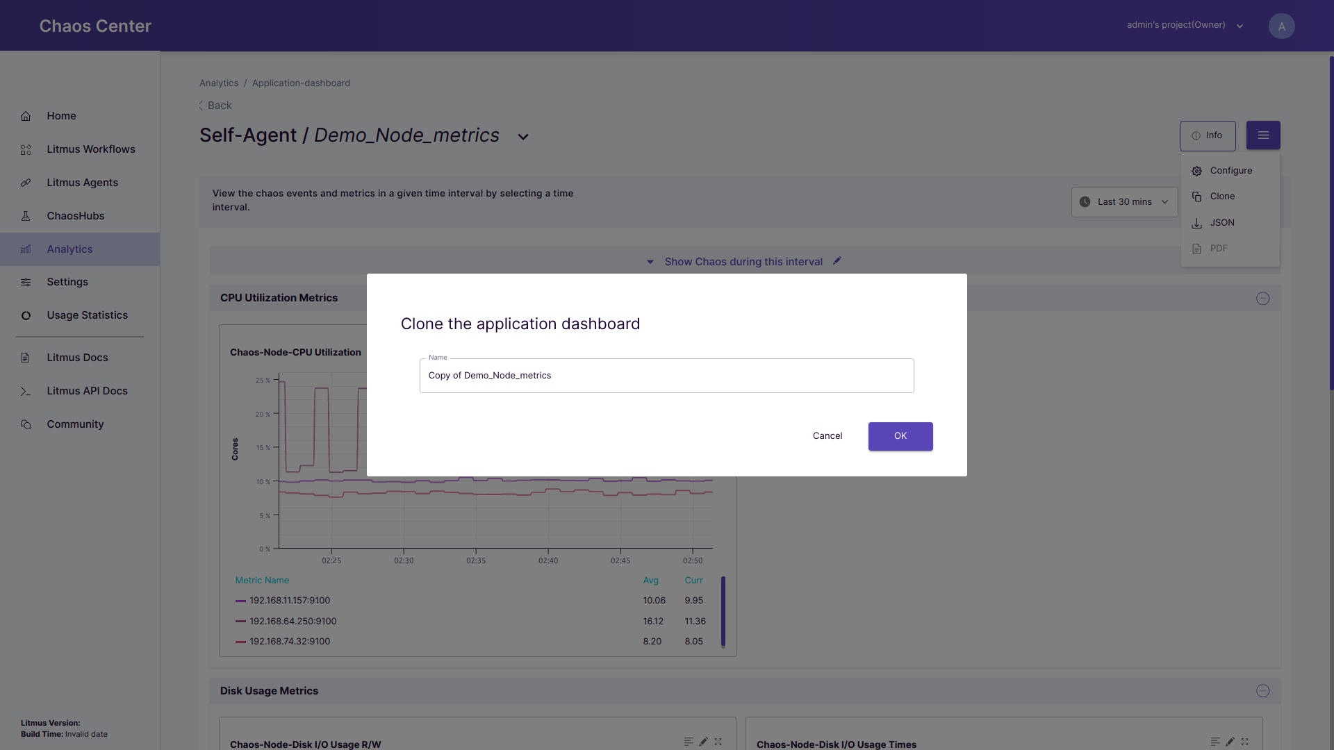 • Clone: To make a copy of the current dashboard click on the clone button. Enter new name of the dashboard and click on ok